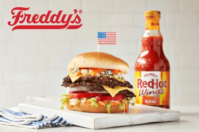 WICHITA, Kan. – Fast-casual restaurant concept Freddy’s Frozen Custard & Steakburgers® announced today the launch of their new Red Hot & Bleu Steakburger and the return of a seasonal favorite: the Pumpkin Pie Concrete. Both limited-time offers are available Aug. 31 through Nov. 1 or while supplies last. The cooked-to-order Red Hot & Bleu Steakburger is prepared with two sizzling patties topped with American cheese, a creamy blend of mayonnaise and Frank’s RedHot® Buffalo Sauce, lettuce, tomato, onion and crumbled bleu cheese.