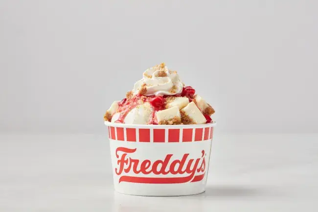 Available as a sundae, concrete or shake, Freddy’s Strawberry Dreamcake makes the perfect cool, creamy treat for summer. While this particular sweet may not be limited to summertime enjoyment, frozen treats in general are even more desirable during these typically hotter months. In addition to classic frozen custard favorites at Freddy’s like the Signature Turtle and the Dirt ‘n Worms, guests may also want to try some of these recent or limited-time additions to our menu this summer!